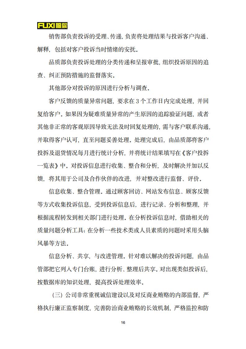 福熙質量誠信報告